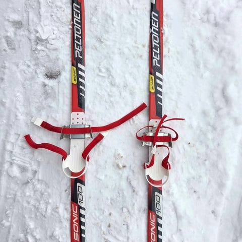 Lasten uudenveroinen Peltonen Sonic ensisuksipaketti: ensisukset 100 cm ja sauvat 75 cm. Sukset voiteluvapaalla pitopohjalla. Sukset kiinnitetään kenkiin.