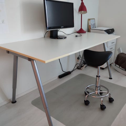 Lykke- säädettävä työpöytä + Jyskin Saltofte- satulatuoli. Myydään muuton takia. Olleet hyvin vähäisessä käytössä. Ei eläintalous.
