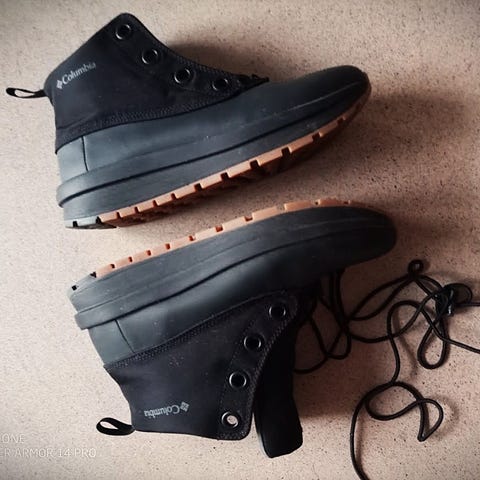 Columbia lämpimät mustat toppasaappaat pitävällä kumipohjalla, koko 39, kapea lesti.