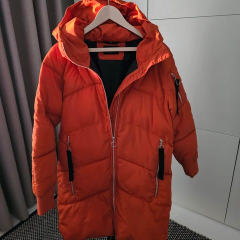 Everestin lämmin takki koossa 38. Jäänyt takkipaljoudessa vähälle käytölle, ei ole pesty kertaakaan. Vetoketjun saa auki molemmista suunnista, vyötäröllä kiristys. Savuton ja eläimetön koti.