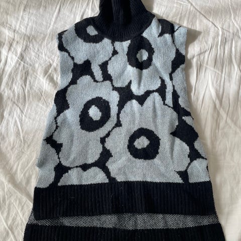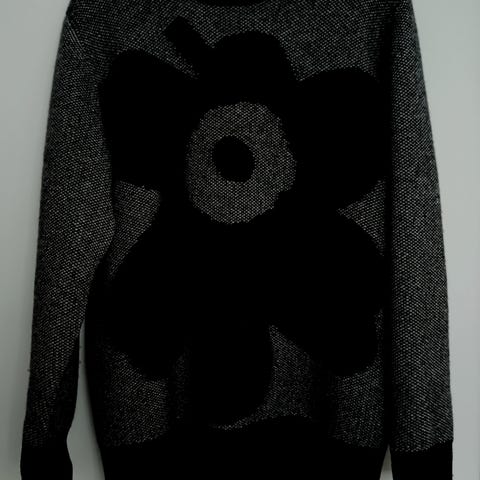Marimekko lohdukas neule, koossa L. Pesty kerran käsin, pientä nyppyä paikoin. Pieni tahra edessä, josta kuva. Kunto käytetty, hyvä!