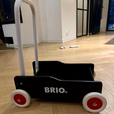 Myydään BRIO puna-keltainen kävelyvaunu.