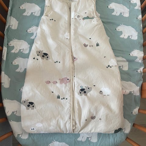Myydään kuin uusi Done by Deer vauvan unipussi, koko 70. Väri Tiny Farm Sand. Lämpöluokitus TOG 2.5.