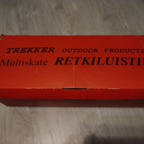 Erittäin hyväkuntoiset ja vähän käytetyt kenkiin kiinnitettävät retkiluistimet. Koko säädettävissä.