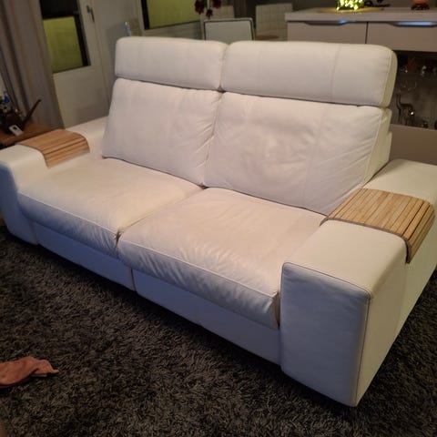 Sohvan omat nahkaiset sohvatyynyt tulevat mukana.
