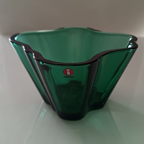 Iittalan aalto 75 mm Bowl- maljakko emerald smaragdi ( vihreä) ollut vain koristeena hyllyssä kuin uusi. Voin postittaa