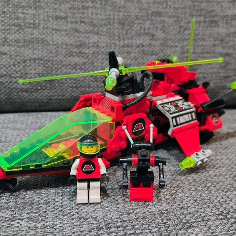 Kuvienmukainen classic space setti vuodelta 1987. Kaikki osat ja ohjekirja. Ohjekirjan selkämystä teippailtu. Joissakin valkoisissa osissa ajantuomaa kellastumista.