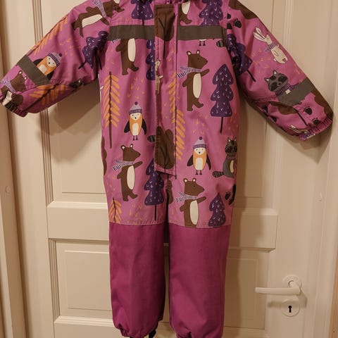 Myydään hyväkuntoinen toppahaalari kokoa 92. Ostettu uutena, ollut kaksi talvea käytössä yhdellä lapsella. Pientä kulumaa, kts. kuvat. Haalari on sopiva sellaisenaan 0-(-5)-asteille, lämmin aluspuvun kanssa. Reilua kokoa. Postikulut kuuluvat hintaan. Halvemmalla saa noutaessa.