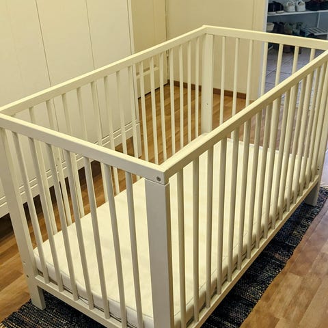 Ikea Gulliver pinnasänky. Sopii vastasyntyneestä asti, pohjan voi säätää eri korkeuksille ja mukaan tulee laita, jonka avulla voidaan muuttaa sivusta avoimeksi taaperosängyksi. Hyvä käytetty kunto.