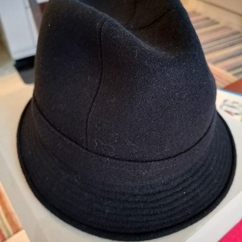 Ollut kaapissa vähän lytyssä, täytyy muotoilla täydelliseksi ennen käyttöä (katso kaksi esimerkkikuvaa kyseisestä hatusta juhlakunnossa).