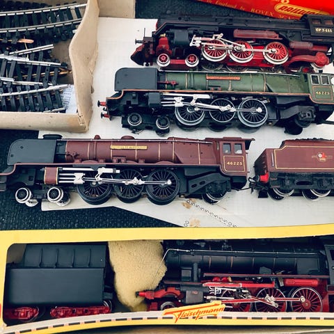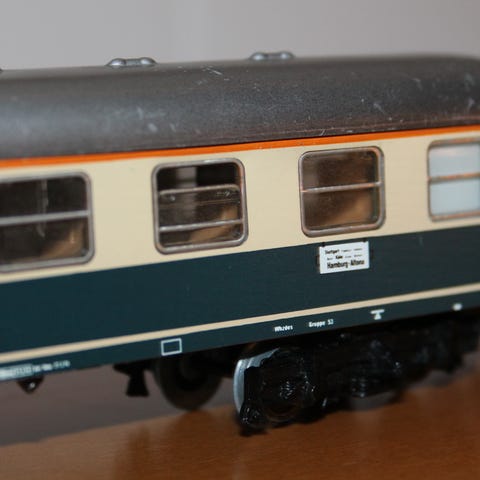 1940-50 luvulta, Hafner trains. Varmaan ainoa Suomessa myynnissä oleva. Veturi, hiilivaunu, 3 matkustajavaunua. Ratoja, 18kpl 30cm kaarre, 4kpl 24cm kaarre, 4kpl 15cm suora, 10kpl 30cm suora, risteys.