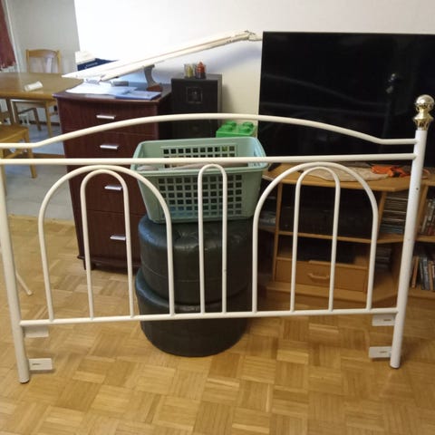 Erittäin siisti ja hyväkuntoinen parisängyn pääty. Kangas/harmaa. N. 3v. vanha.
