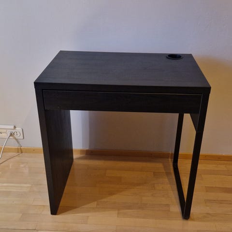 Välihyllyt poistettu (eikä tallella) koska olen pitänyt pöytäkonetta tuolla kaapissa 'piilossa'. Pieni vetolaatikko irrallaan, mutta kiskot ja ruuvit tallessa jos sen haluaa vielä kiinni.