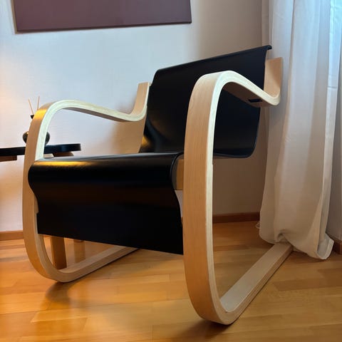 Alvar Aallon 1928 suunnittelema ikoninen ja legendaarinen Paimio 41 nojatuoli. Pidetään jopa Alvar Aallon parhaana luomuksena. Ovh 4270€.