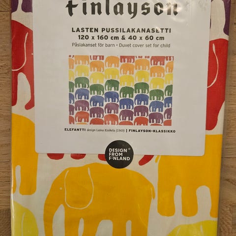 Finlayson elefantti pussilakana ja tyynyliina lapselle