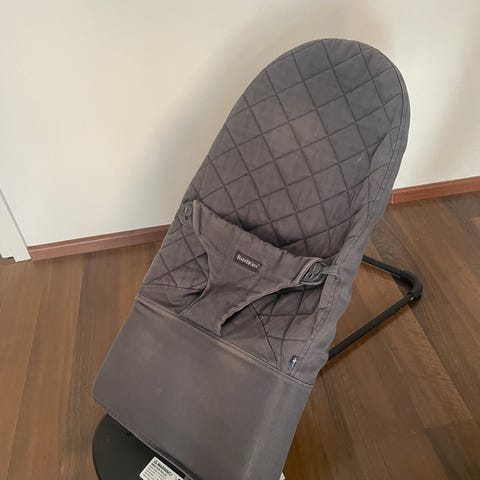 Harmaa BabyBjörn sitteri irroitettavalla lelukaarella, sitterin kulma säädettävissä. Siisti käytetty kunto. Vain nouto.