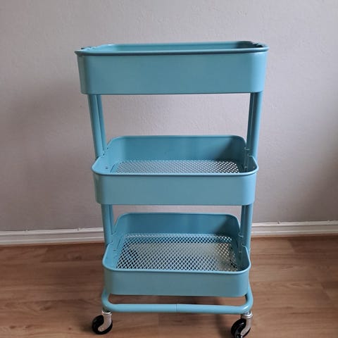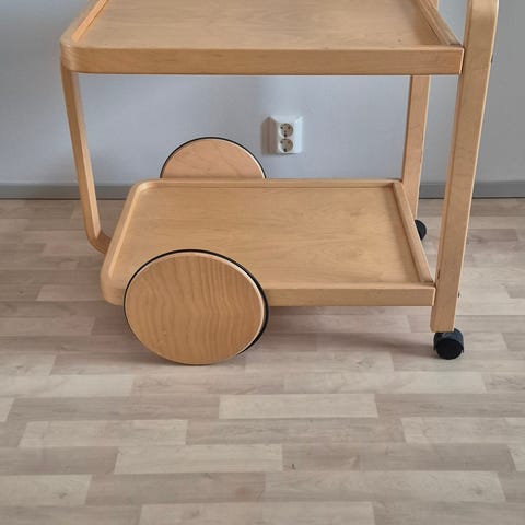 Sisustuselementiksi tai käyttöön soveltuva rustiikkinen tarjoilukärry. Toimivat renkaat kääntyy ja lukittavat jarrut. Korit irroitettavissa ja kärry taittuu kasaan.