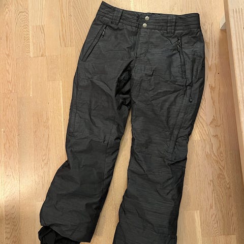 Vaalean siniset. Lumipussit lahkeissa ja vetoketjut.Tuuletusaukot sisäreisissä ( vetoketjut ). Sivutaskut, reisitaskut, takatasku. Polyester/polyamidi. TAKAPUOLESSA TAHRA, ei lähtenyt pesussa. Nouto tai lähetys.
