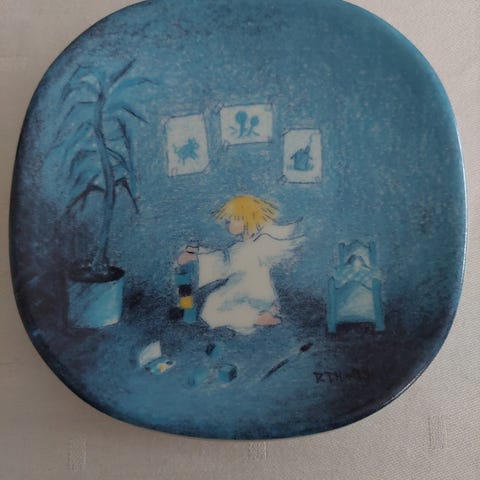 Arabia Finland seinälautanen valmistettu keramiikasta. Lautanen on koristeltu taidekuvalla, jossa on lapsihahmoja ja enkeli. Sopii seinäkoristeeksi.