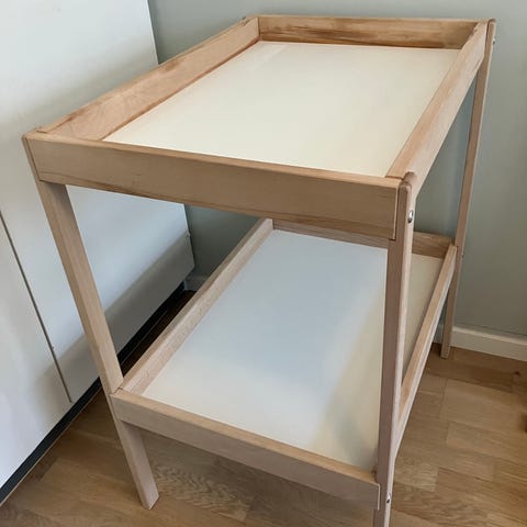 IKEAn Sniglar hoitopöytä muokattu päältä täytettävän pienen pesukoneen päälle liikkuvaksi. Mukaan tulee hoitoalusta, 2x hoitoalustan päällinen, hoitopöydän lokerikko sekä mobile (kaikki Ikean tuotteita). Yhdellä vauvalla ollut käytössä.