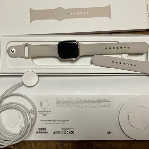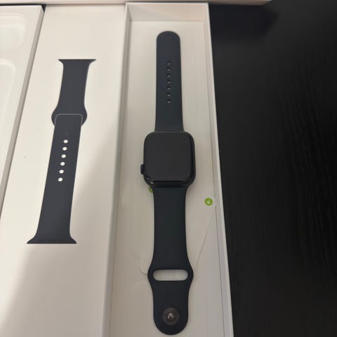 Virheetön täydessä iskussa oleva Apple Watch Series 8 45 mm Midnight aluminium akku 100%.