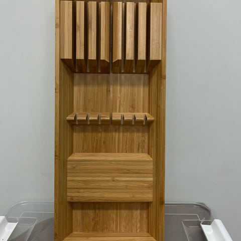 Myydään Ikean bambuinen aterinlaatikko ja veitsiteline. Sopii useimpiin keittiöihin. Yhteismitat n. 52 × 50 × 5 cm