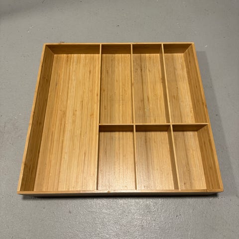 Myydään Ikean bambuinen aterinlaatikko. Sopii useimpiin keittiöihin. Mitat n. 52 × 50 × 5 cm
