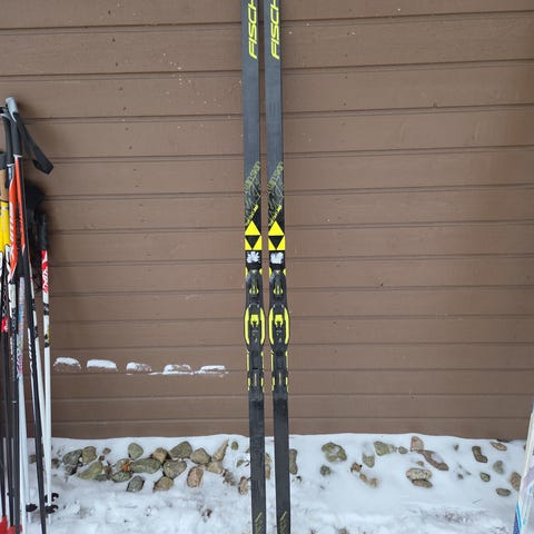 Fischer Sprint skin JR -mallin karvapohjasukset, pituus 170 cm, väri musta ja keltainen. Sopivat valmistajan mukaan 50-55 kg painoiselle käyttäjälle.
