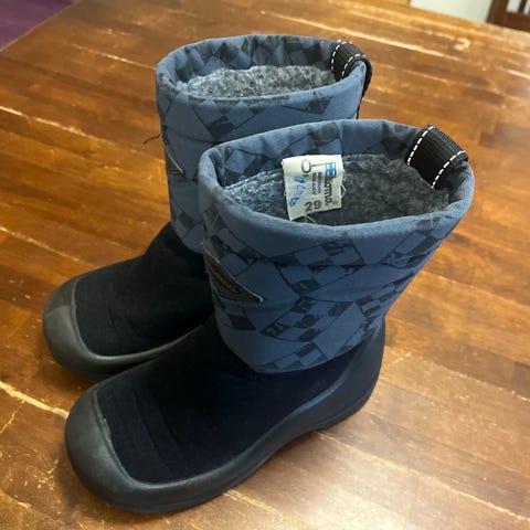Kuoma lasten talvikengät, koko 29, unisex. Kengissä on lämmin vuori ja ne soveltuvat kylmiin sääolosuhteisiin. Väri tummansininen.