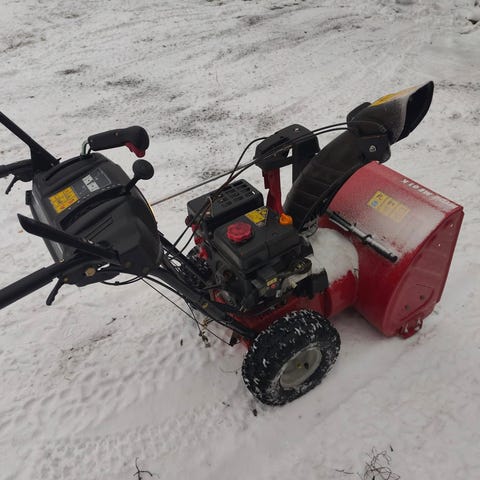 Pieni sähköjohdolla pistorasiaan liitettävä lumilinko.
