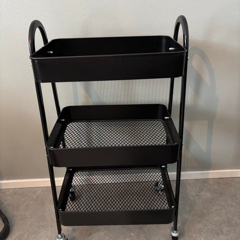 Metallinen hyllykkö, valkoinen väri. Suunniteltu pesukoneen ympärille laitettavaksi, mutta sopii muutenkin. Korkeus 162cm, leveys 66cm, syvyys 30cm. Hyllyjen kantokyky 5kg.