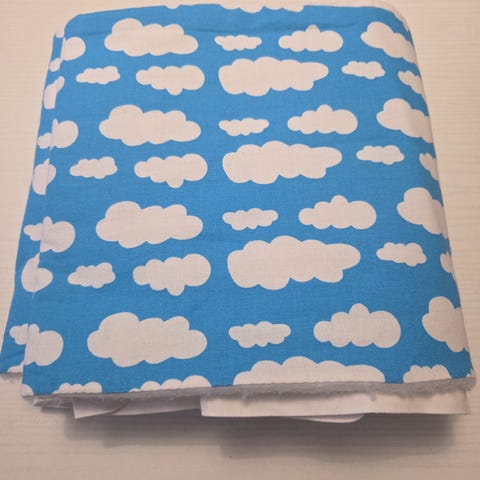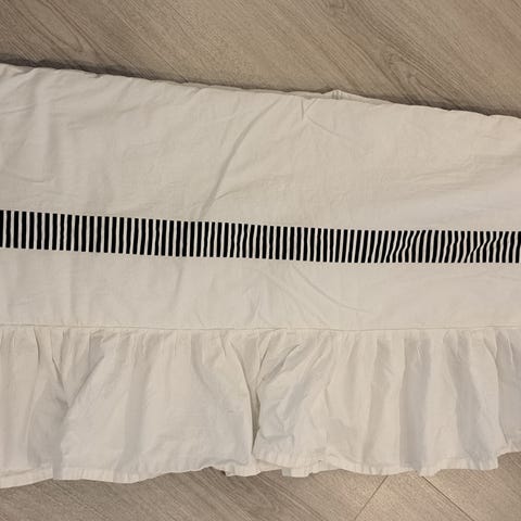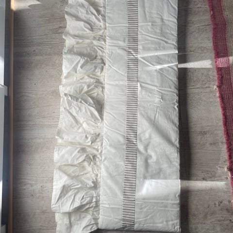 Yhdellä vauvalla käytössä ollut valkoinen reunapehmuste äitiyspakkauksen laatikosta vastasyntyneelle vauvalle tehtyyn vuoteeseen. Ovh. 42,42 €