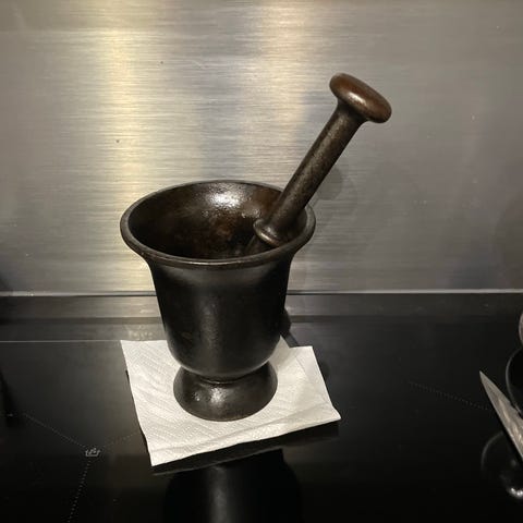 Myynnissä Ronnebyn valurautainen mortteli + survin