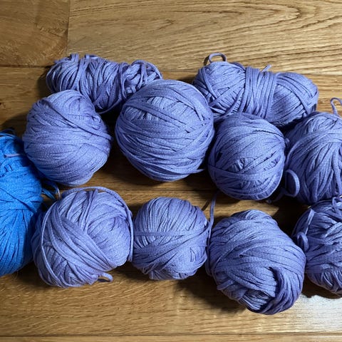 Mammutti-lanka 500g väri 447 ja Unelma-lanka 200g väri 404.