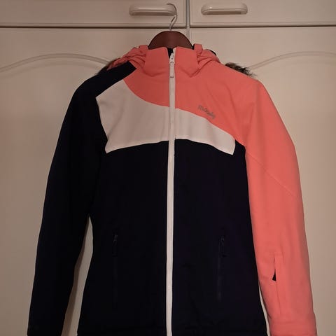Takki n.3v vanha, housut vajaa vuoden. Housut muuten kuin uuden veroiset, mutta laskettelumonojen siteet, sisäpuolen vahvikkeisiin jättänyt jälkiä.