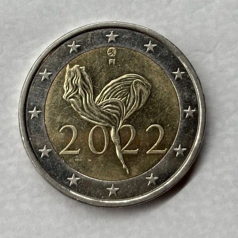 Kierrosta napattu 2€ kolikko V. 2022