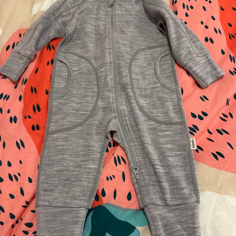 Myydään äitiyspakkauksesta saatu villahaalari koossa 68/74. Käännettävät hihansuut ja tuplavetskari.