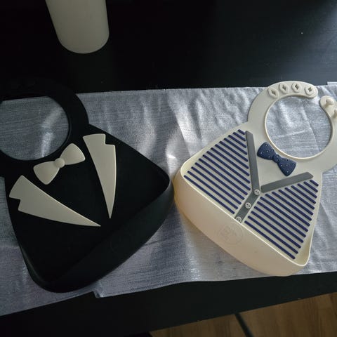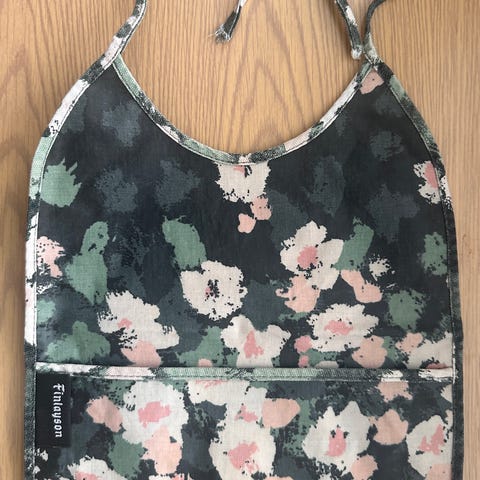 Marimekko Ruusunen ruokalappu, mustavalkoinen pilkkukuviointi. Valmistettu kestävästä materiaalista, sopii päivittäiseen käyttöön ruokailuhetkissä.