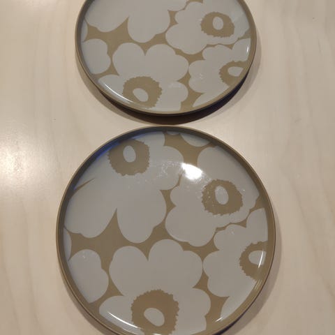 Marimekko lautaset, unikko ja siirtolapuutarha