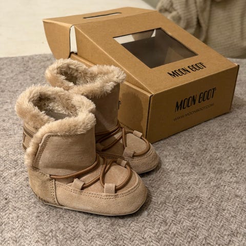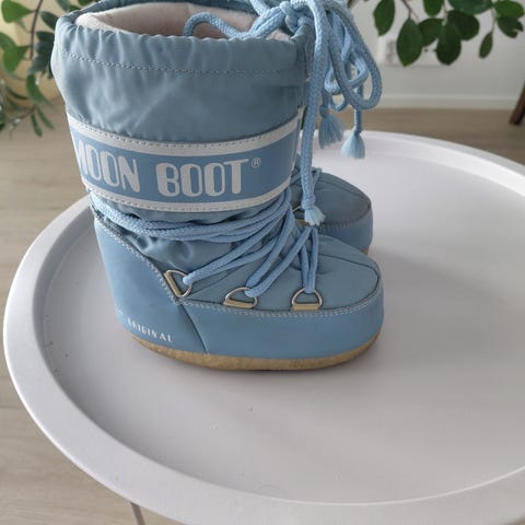 Uudet, paketissa olevat tumman siniset moon bootsit. Olivat meille liian pientä kokoa. Koko 19/21