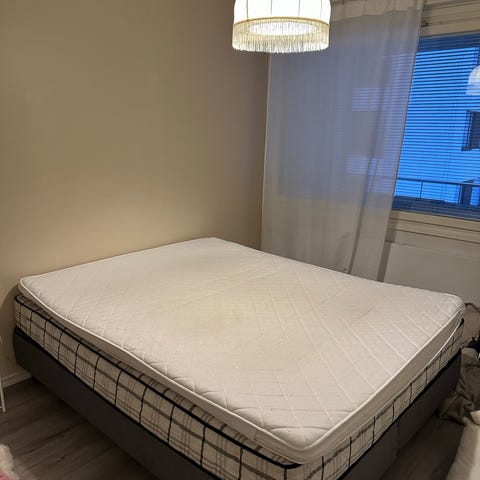 Vuosi sitten työasuntoon hankitty erittäin siisti ja laadukas sänkypaketti. Siirryn itse takaisin kokeilun jälkeen futonnukkujaksi.