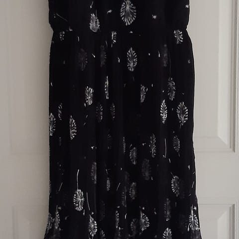 Ihanaa - tässä hameessa on taskut. Käyttämätön (laput kiinni) musta, tyylikäs midihame koossa 36. Irrotettava vyö. Materiaali viskoosi/polyasteri/polyamidi. Mitat: vyötärö 70cm, vyötärö-helma 71cm.
