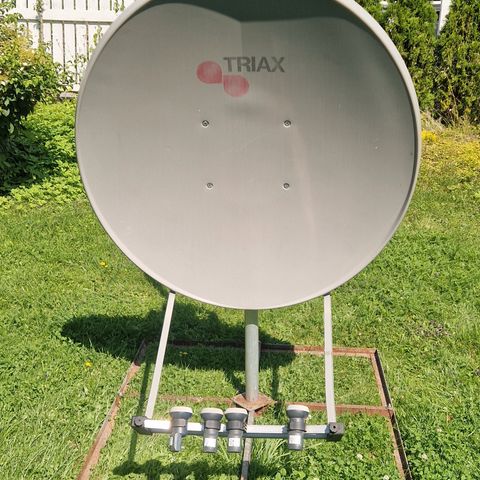 Myynnissä tarpeettomaksi jäänyt Triax satelliittiantenni lautasantenni ja siihen universal mikropää eli LNB. Antennin korkeus 97cm ja leveys 88cm. Mikropään malli Opticum LSP-02G. Nämä ovat vain lyhyesti testattuja useampi vuosi sitten jonka jälkeen varastoitu joten eivät ole olleet sään armoilla.