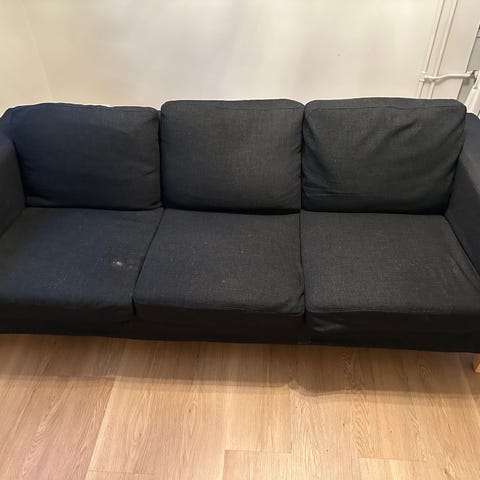 Yhtä jalkaa vahvistettu valmistusvirheen takia sohvan sisältä kulmaraudalla (valmistuksessa kiinnitys tehty laudan liian reunaan, jolloin repeämisriski, mutta nyt on ja pysyy) ja muuten hyvässä kunnossa.