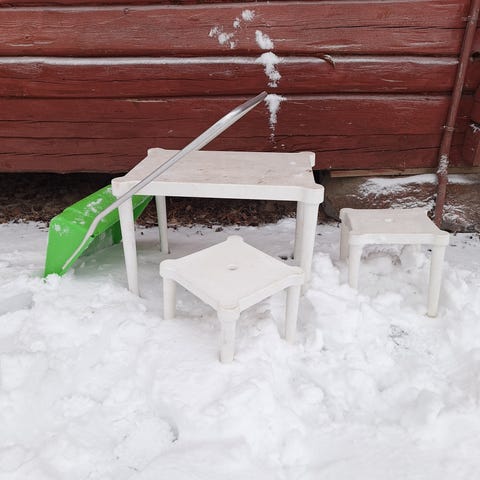 Annetaan kuvissa olevat mäenlaskuun tarkoitetut liukuri, pulkka ym.