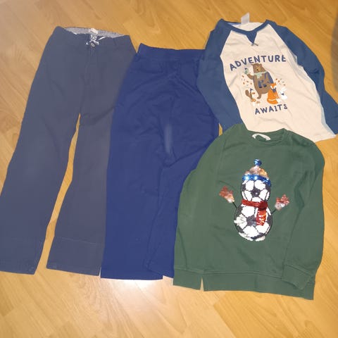 Toppahaalari jossa hyvin vähäistä kulumaa - polvet ehjät, collegepaita joka lähestulkoon käyttämätön, collegepusakka ja pari collegehupparia joista toisessa vähän paksumpi vuori.