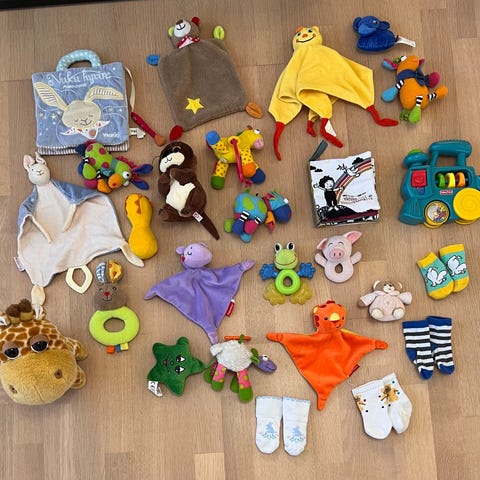 ❄️ Myynnissä kuvassa näkyvät vauvan lelut ja kirjat.