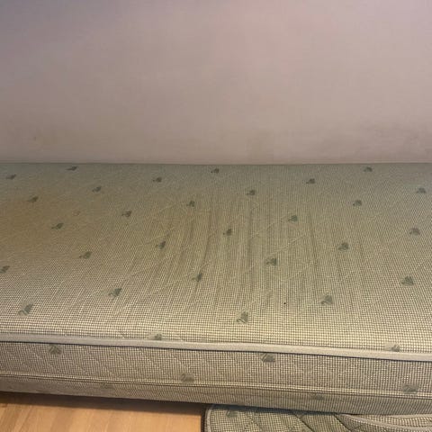 Päällisessä tahraa. Toinen sivulauta aikoinaan katkennut, joka korjattu tukipuulla (kuva). Meillä ei lemmikkejä Nouto.