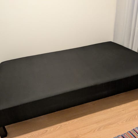 Vanha sänky pois uuden tieltä. Ei huippukunnossa, mutta hyvässä käyttökunnossa. Ulkoisesti tahroja lukuunottamatta kunto todella hyvä, mutta ajansaatossa jouset hieman löystynyt. Korkeus jalkojen kanssa n.48 cm. Sijaitsee Oulunkylässä, koiratalous.