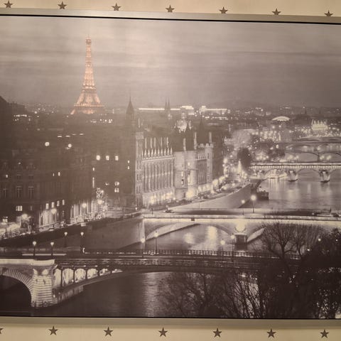 Ikea taulu pariisi mustavalkoinen, Eiffel-torni valaistu värein. 140x100cm
